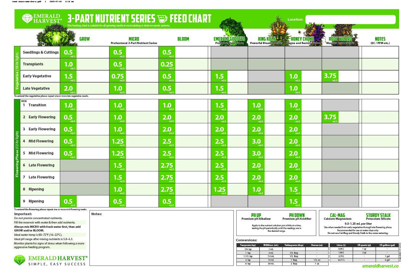 Emerald Harvest er høykvalitets base- og tilleggsnæringer for hydroponisk dyrking i både resirkulerende systemer og run-to-waste systemer.