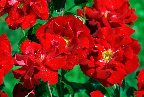 ANDALUSIEN: Rød. Lett fylte blomster. Gjenblomstrende. Plantehøyde ca. 50-70 cm. H4. Regnsterk. God sykdomsresistens.