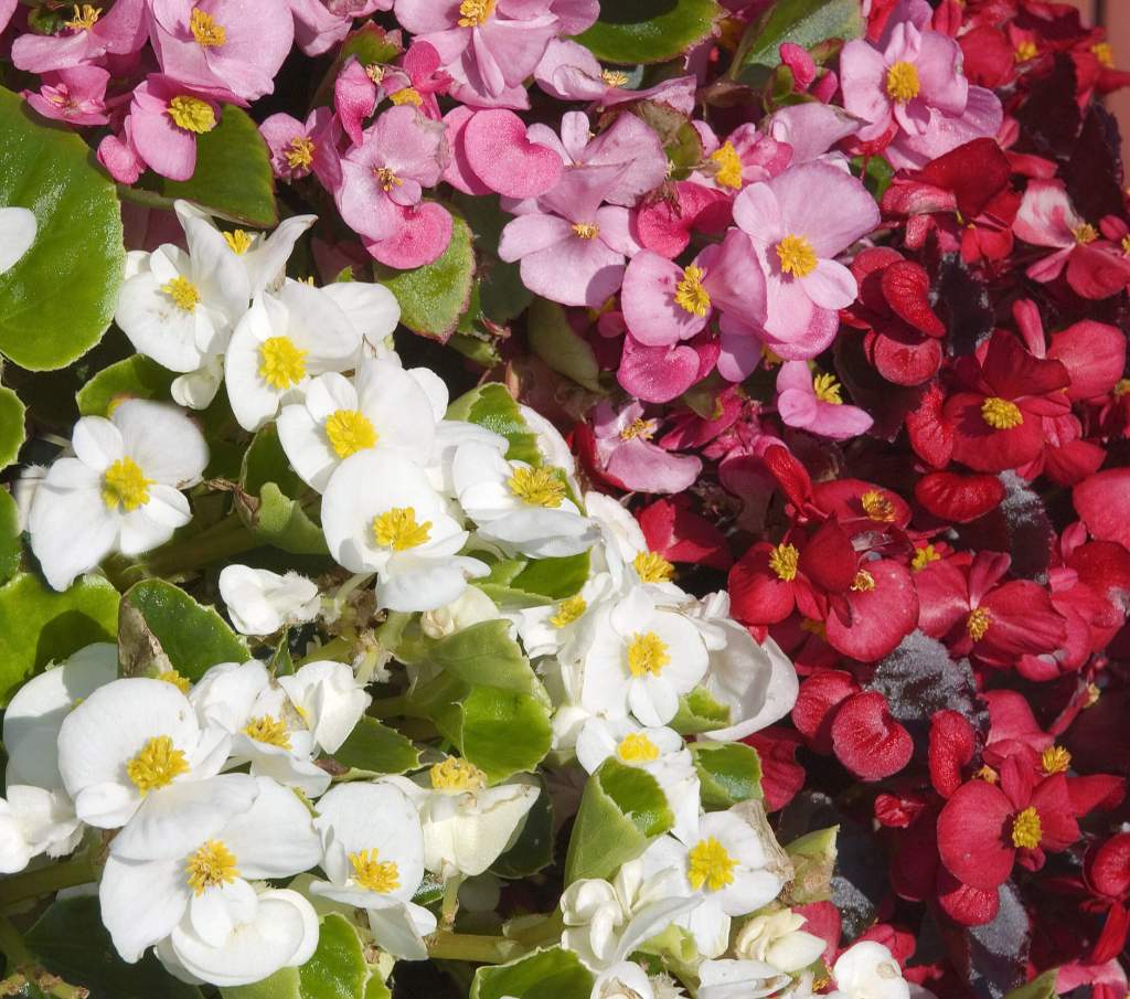 Sommerblomster med blomsterfargene hvitt, gult, oransje, rødt, rosa, hvitt eller i en miks med et utvalg av disse fargene.